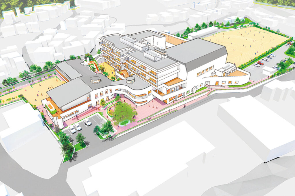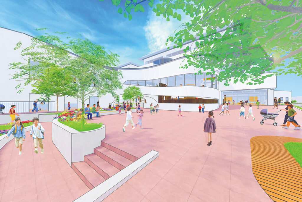 竣工年 2028年 | 用途 小学校、公民館、保育園 | 延床面積 10,854㎡ | 所在地 愛知県蒲郡市